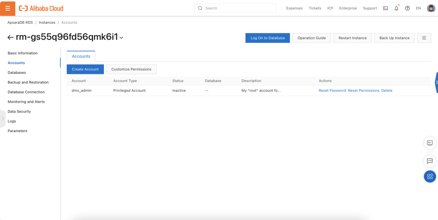 Để tiến hành sử dụng DMS để quản lý cơ sở dữ liệu RDS, ta cần tạo ra 1 instance ApsaraDB RDS. Trong bài hướng dẫn này, chúng tôi sẽ xem như bạn đã tạo được một cơ sở dữ liệu của riêng mình trên RDS.