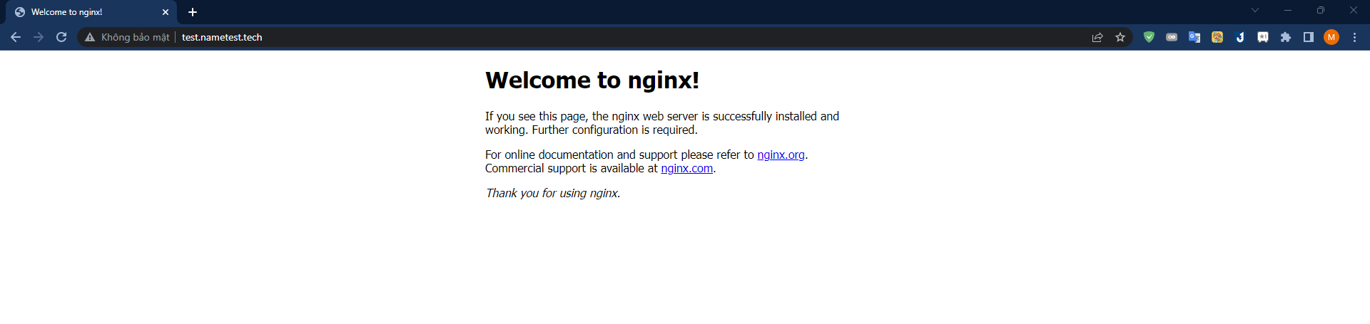 Và đây là kết quả truy cập địa chỉ test.nametest.tech trên trình duyệt
