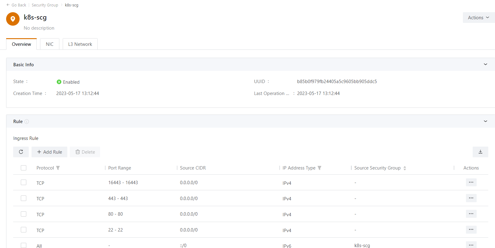 - Tạo Security Group, các máy chủ sẽ dùng chung Security Group này để có thể giao tiếp được với nhau và bên ngoài dựa trên các rule