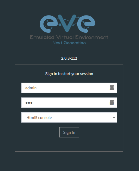 Tên người dùng mặc định cho GUI là admin và mật khẩu là eve trong khi tên người dùng mặc định cho SSH là root và mật khẩu là eve nhưng bạn có thể thay đổi trong quá trình thiết lập.