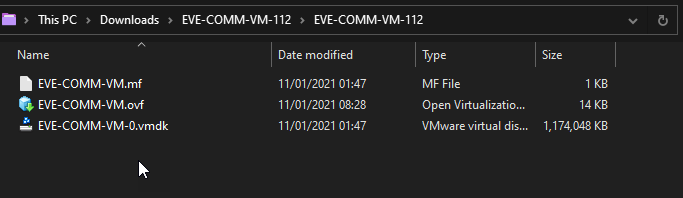 Khi bạn tải xuống file EVE-NG OVF, nó sẽ nằm trong một tệp nén. Giải nén nội dung vào thư mục và nó trông như thế này.