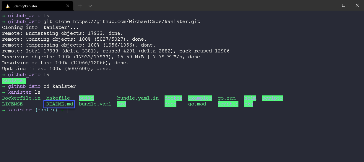 Chúng ta không có quyền để đẩy trực tiếp các thay đổi trở lại kho lưu trữ của Kanister, vì vậy chúng ta phải đi theo con đường này. Bây giờ sau khi chúng ta hài lòng với những thay đổi cùa mình, chúng ta có thể chạy quả một số lệnh phổ biến của git.